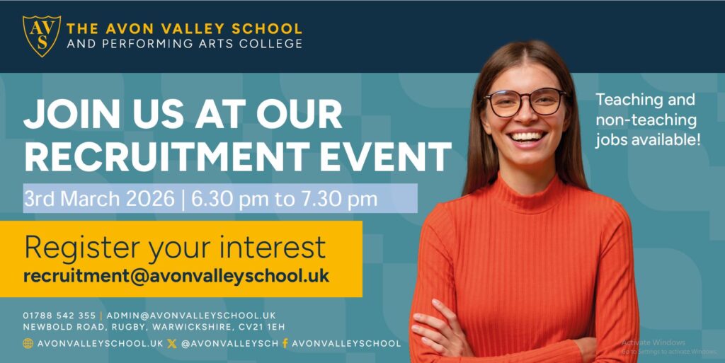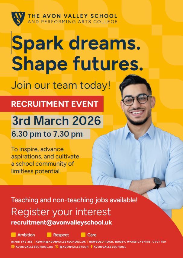 The Avon Valley School and Performing Arts College is a popular and over-subscribed foundation school in Warwickshire. We provide an exciting and ambitious curriculum for 11 to 16 year olds and were recently graded ‘Good’ school by Ofsted. We are committed to building supportive, professional relationships between students, staff, parents and carers and the community that we serve.