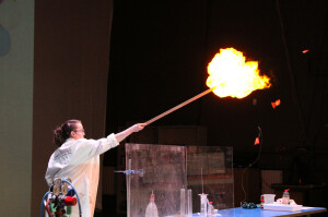 The chemistry experts’ experiments included making elephant’s toothpaste using hydrogen peroxide, washing up liquid, and potassium iodide. Exploding balloons and bottles filled with gases, and showing the students burning magnesium and the effects of dry ice.