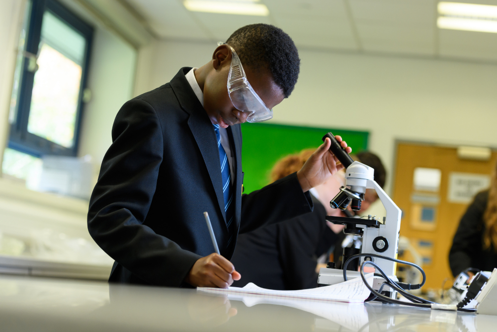 Students in Year 10 begin studying the AQA GCSE Combined Science ‘Synergy’ scheme of work. This provides students with a broad approach to science helping them to make links between the different branches of the subject. The progress of students is assessed throughout the year with topic tests and two whole year assessments. Those students who have shown sufficient aptitude for science follow the AQA Separate Sciences curriculum, allowing them to obtain an individual GCSE in Biology, Chemistry and Physics. Students continue to study either Combined Science or Separate Sciences throughout Year 10 and Year 11.